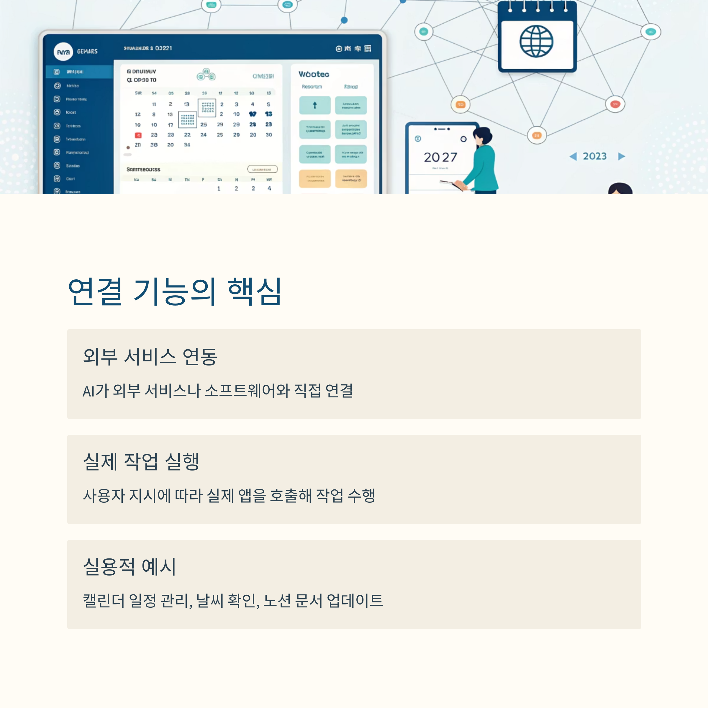 클로드의 연결 기능은 AI가 외부 서비스나 소프트웨어와 직접 연동되어