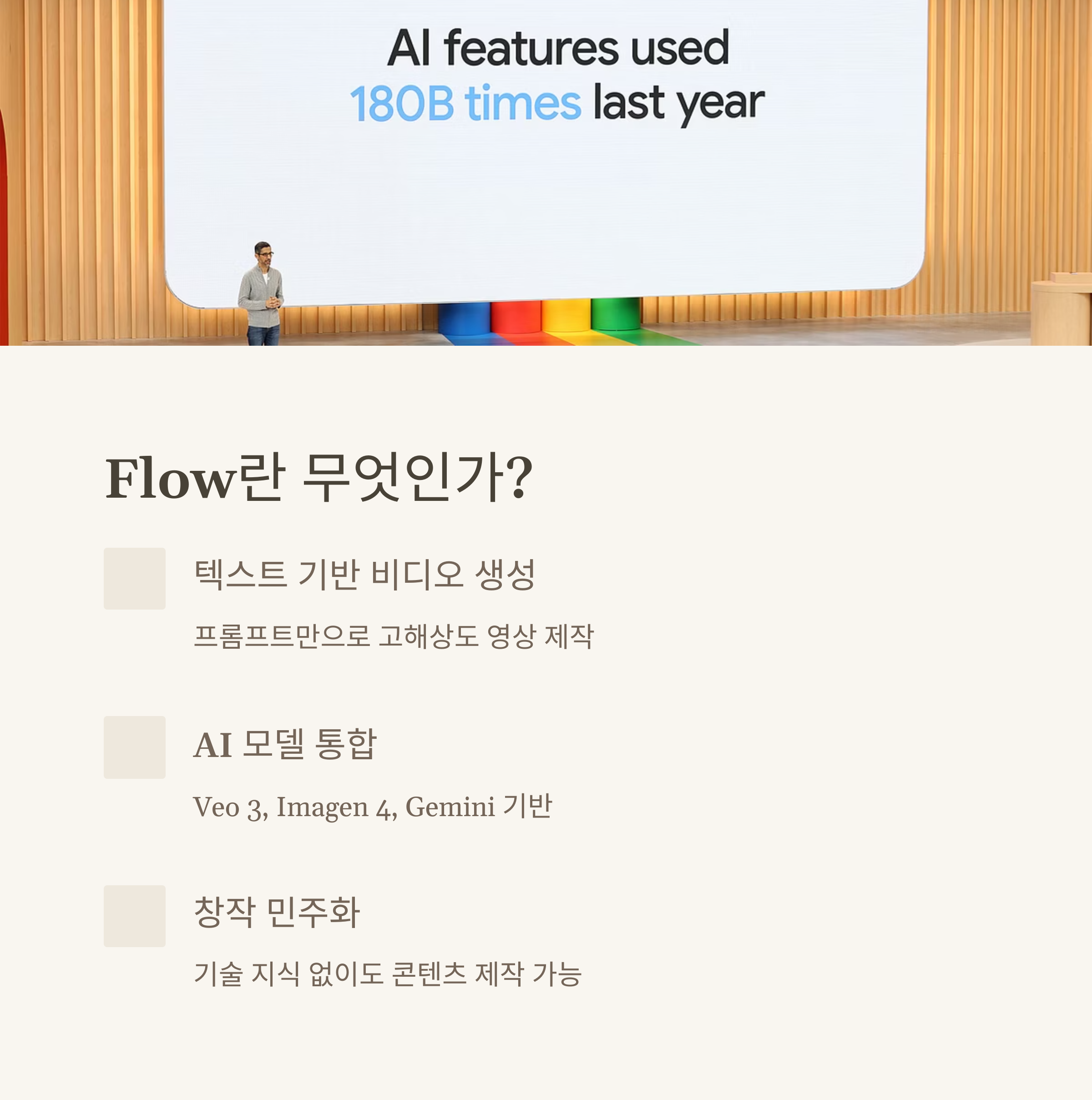 습니다. 구글은 I/O 2025에서 혁신적인 AI 기반 영화 제작 도구 'Flow'를 공개하며, 창작자들에게 새로운 가능성을 제시했습니다.