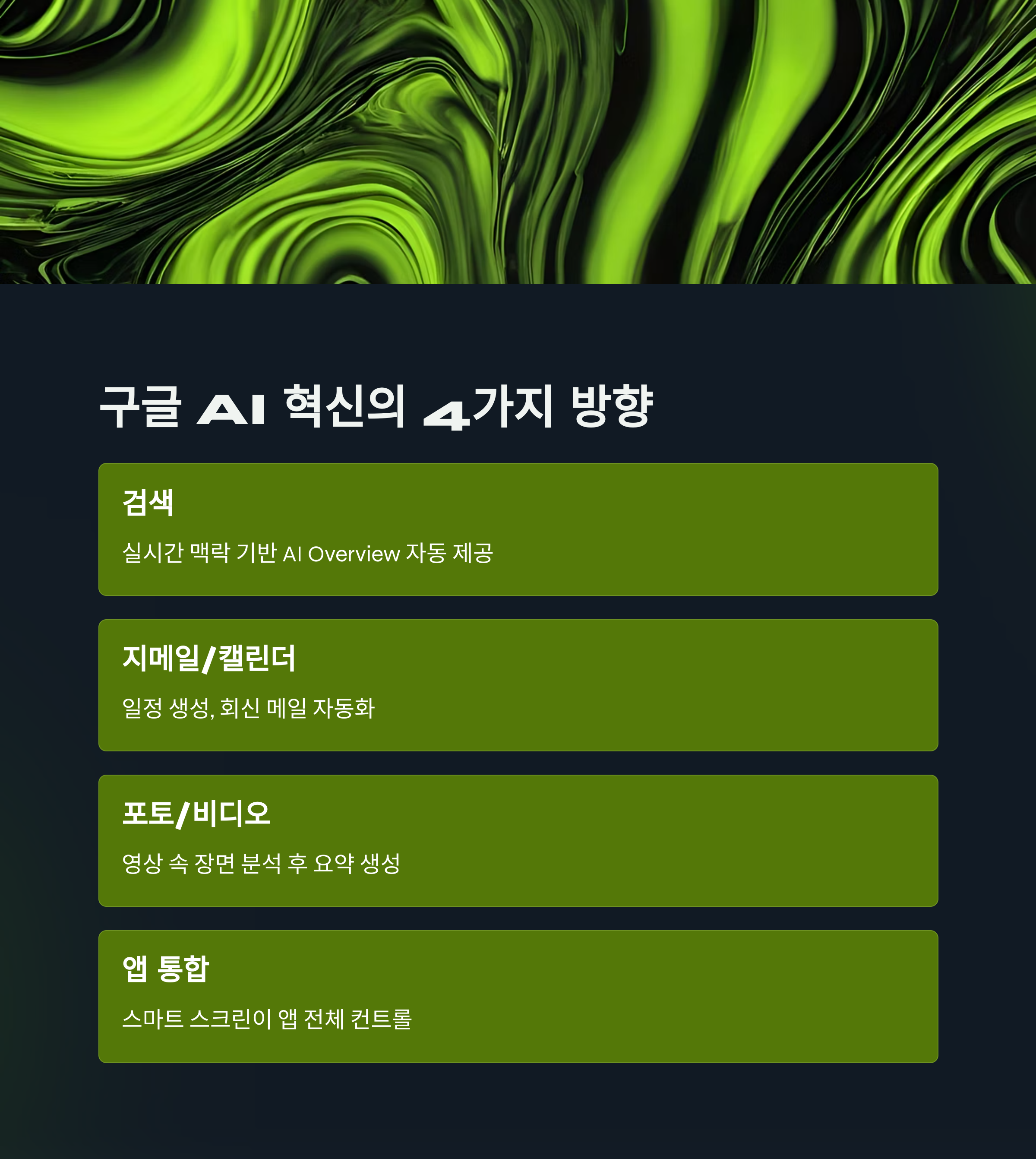 | 검색 | 실시간 맥락 기반 ‘AI Overview’ 자동 제공 |