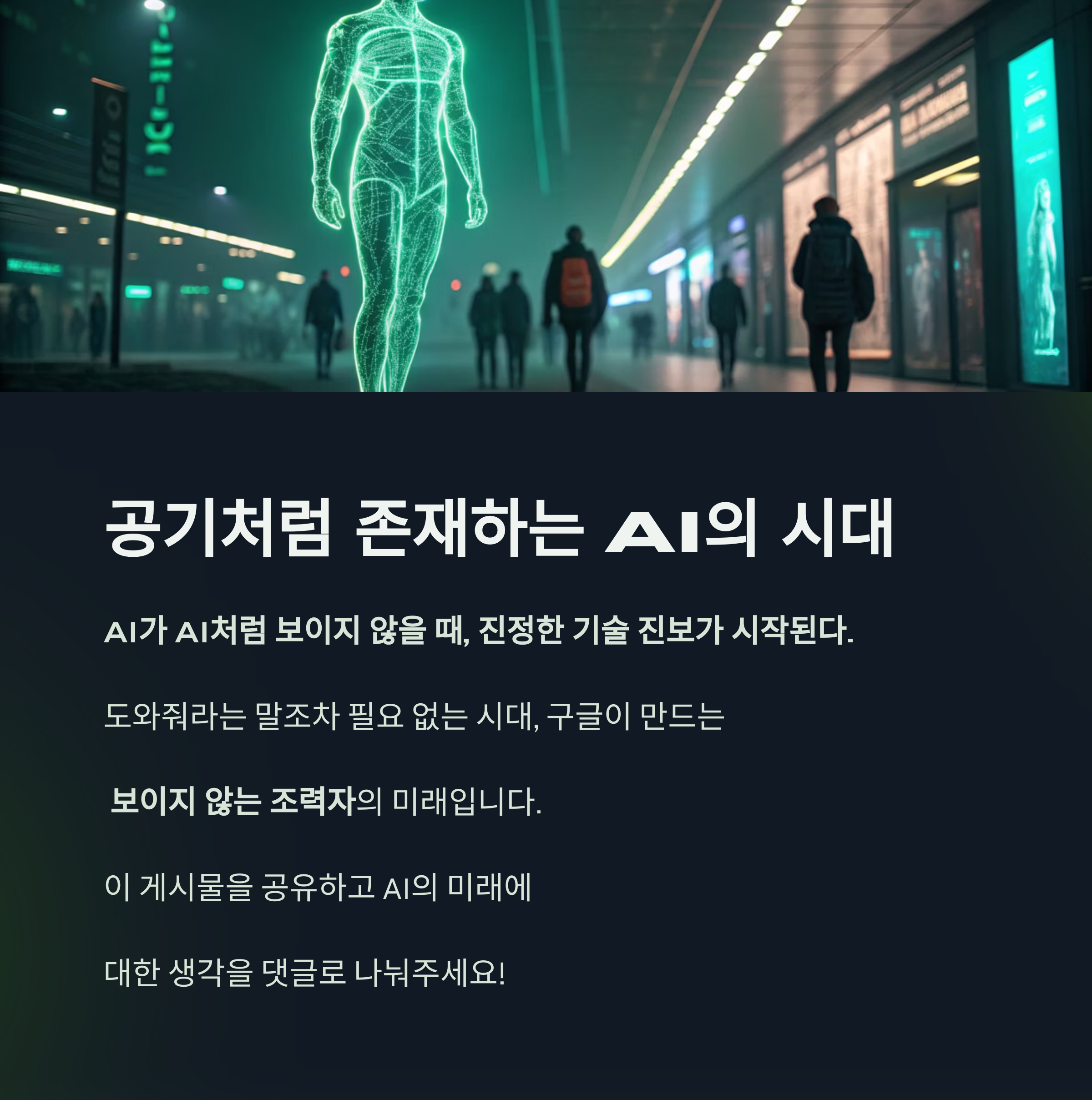 AI가 AI처럼 보이지 않을 때, 진정한 기술 진보가 시작된다는 메시지가