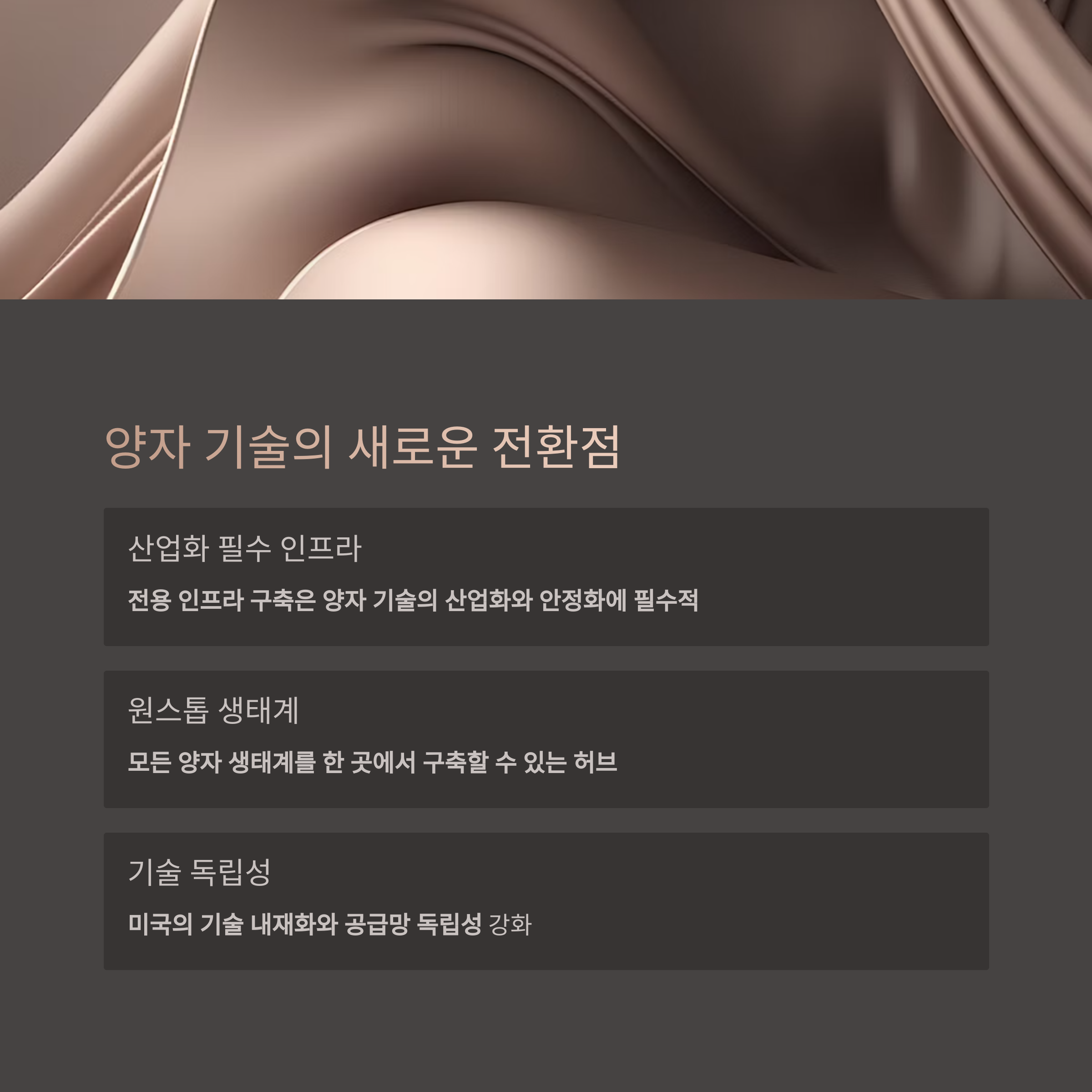 이 시점에 전용 인프라 구축은 양자 기술의 산업화와 안정화에 필수적입니다.