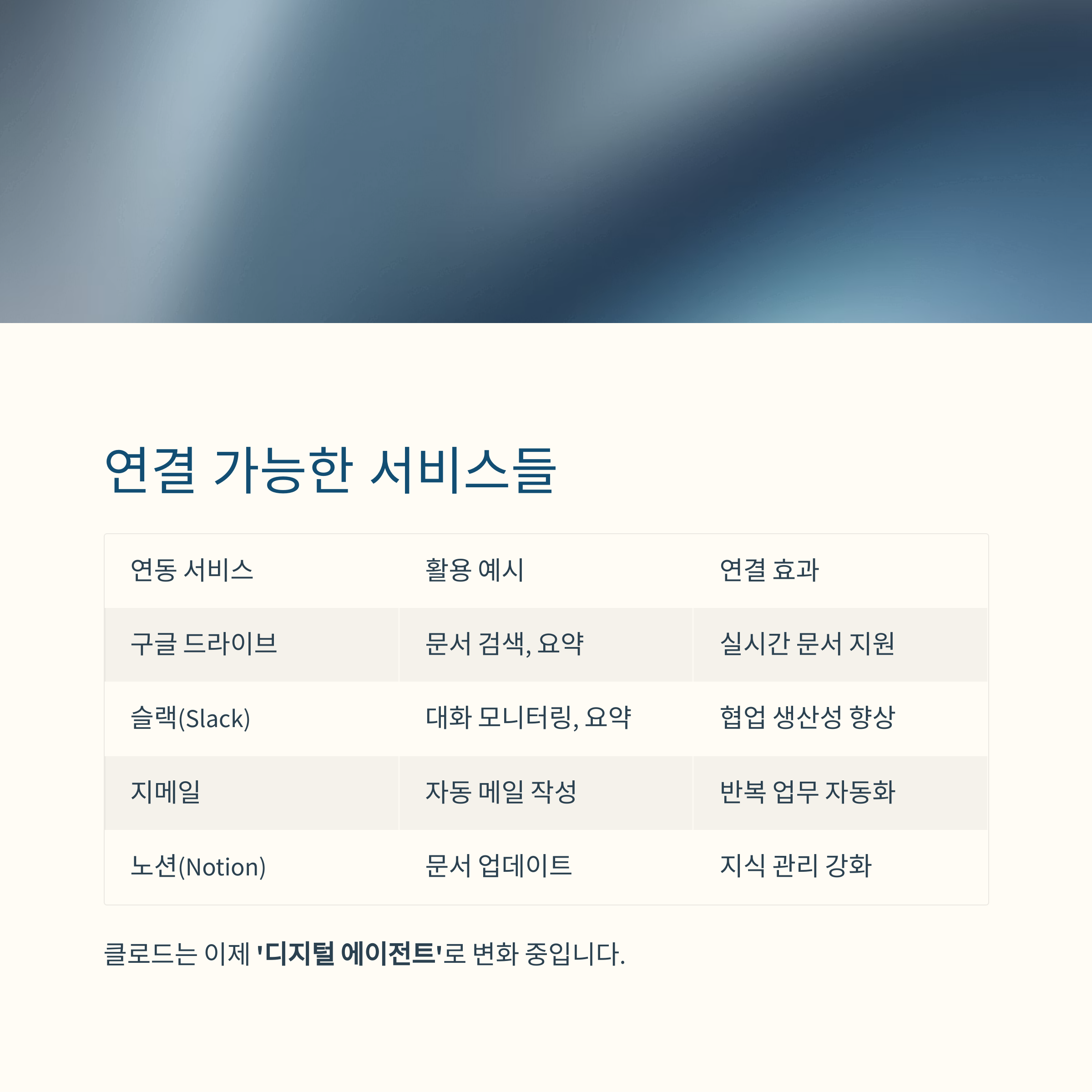 클로드의 연결 기능은 AI가 외부 서비스나 소프트웨어와 직접 연동되어