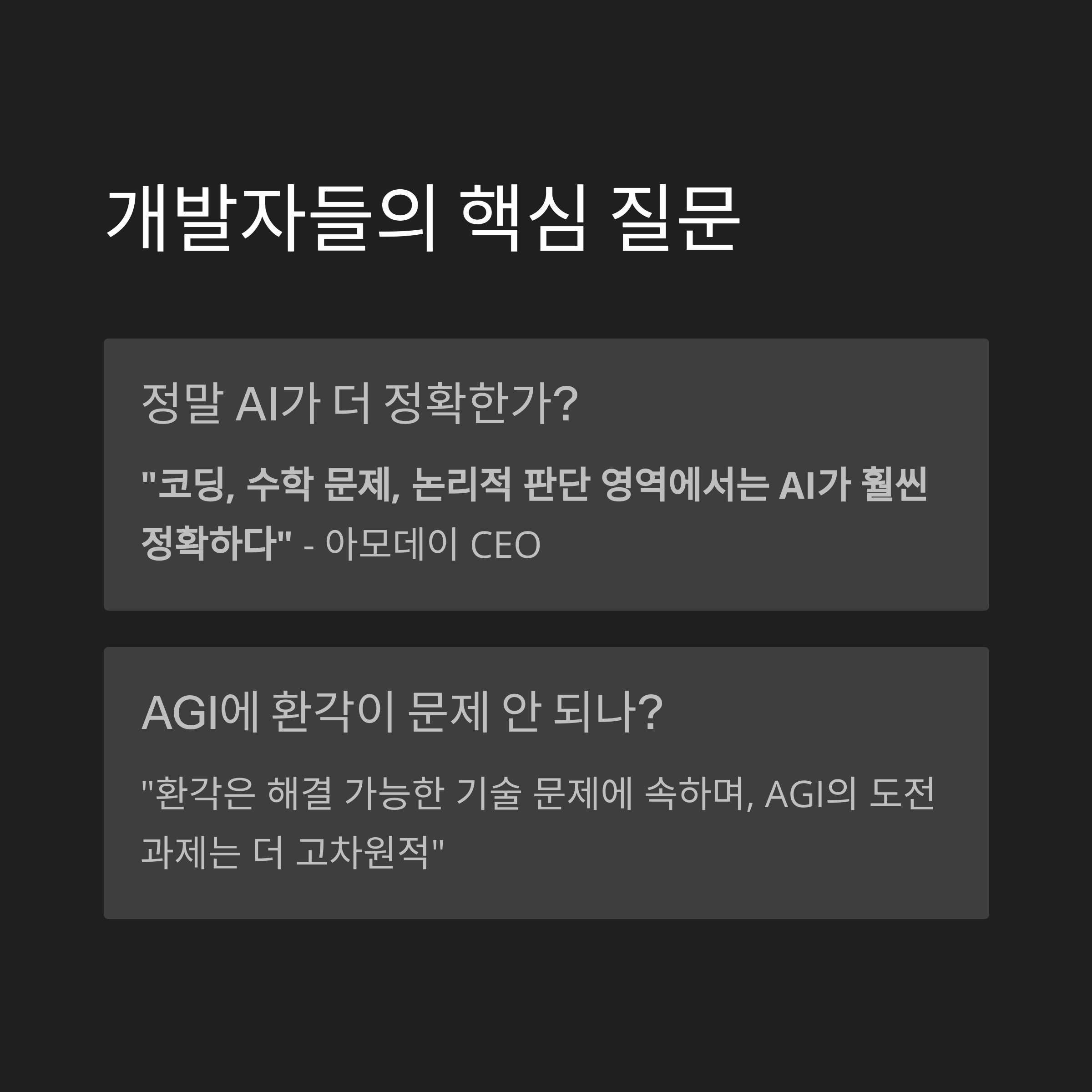 → CEO는 **“오히려 환각은 해결 가능한 기술 문제에 속하며, AGI의 도전 과제는 더 고차원적”**이라고 강조했습니다
