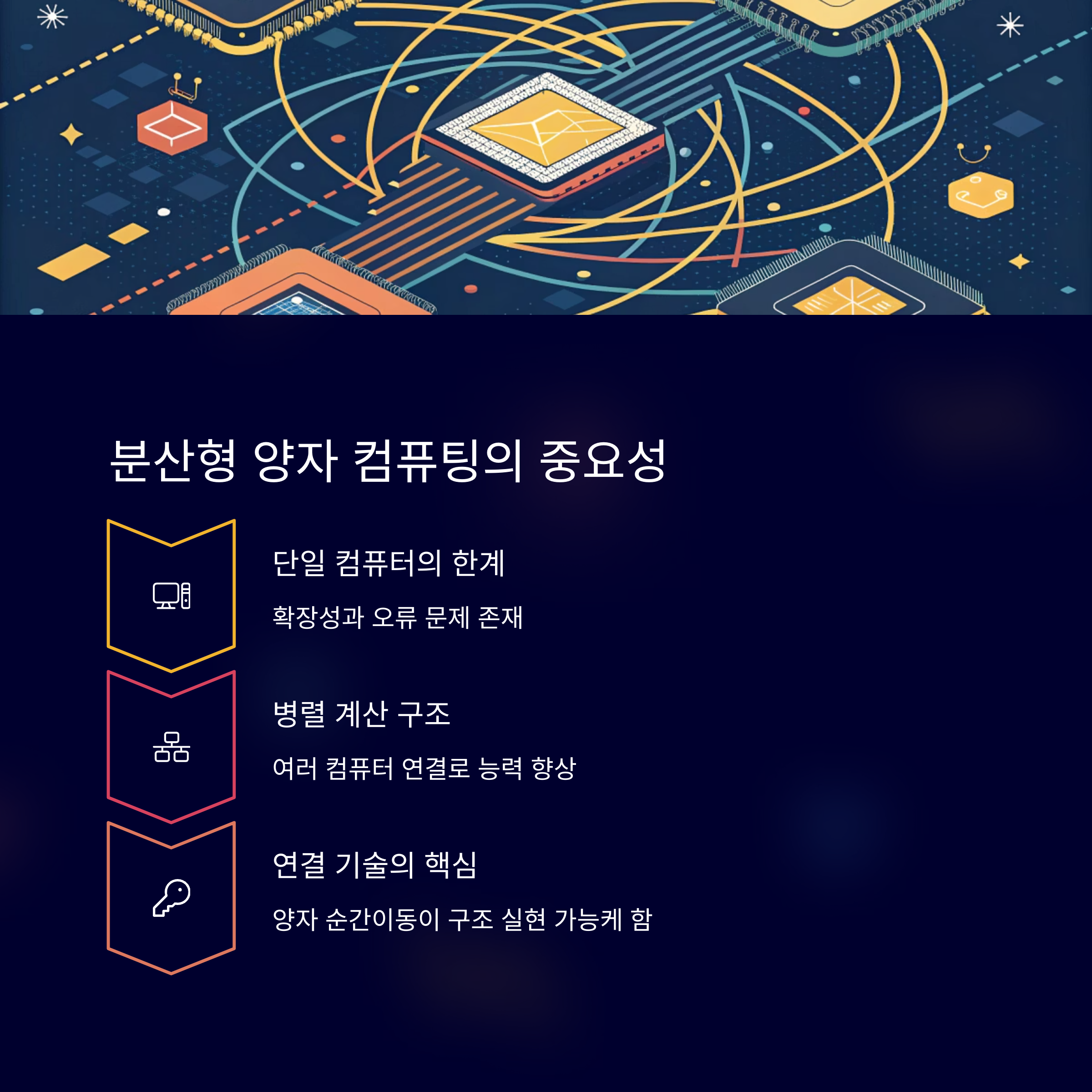 한 대의 양자 컴퓨터는 확장성과 오류 문제로 인해 기능적 한계가 있지만,