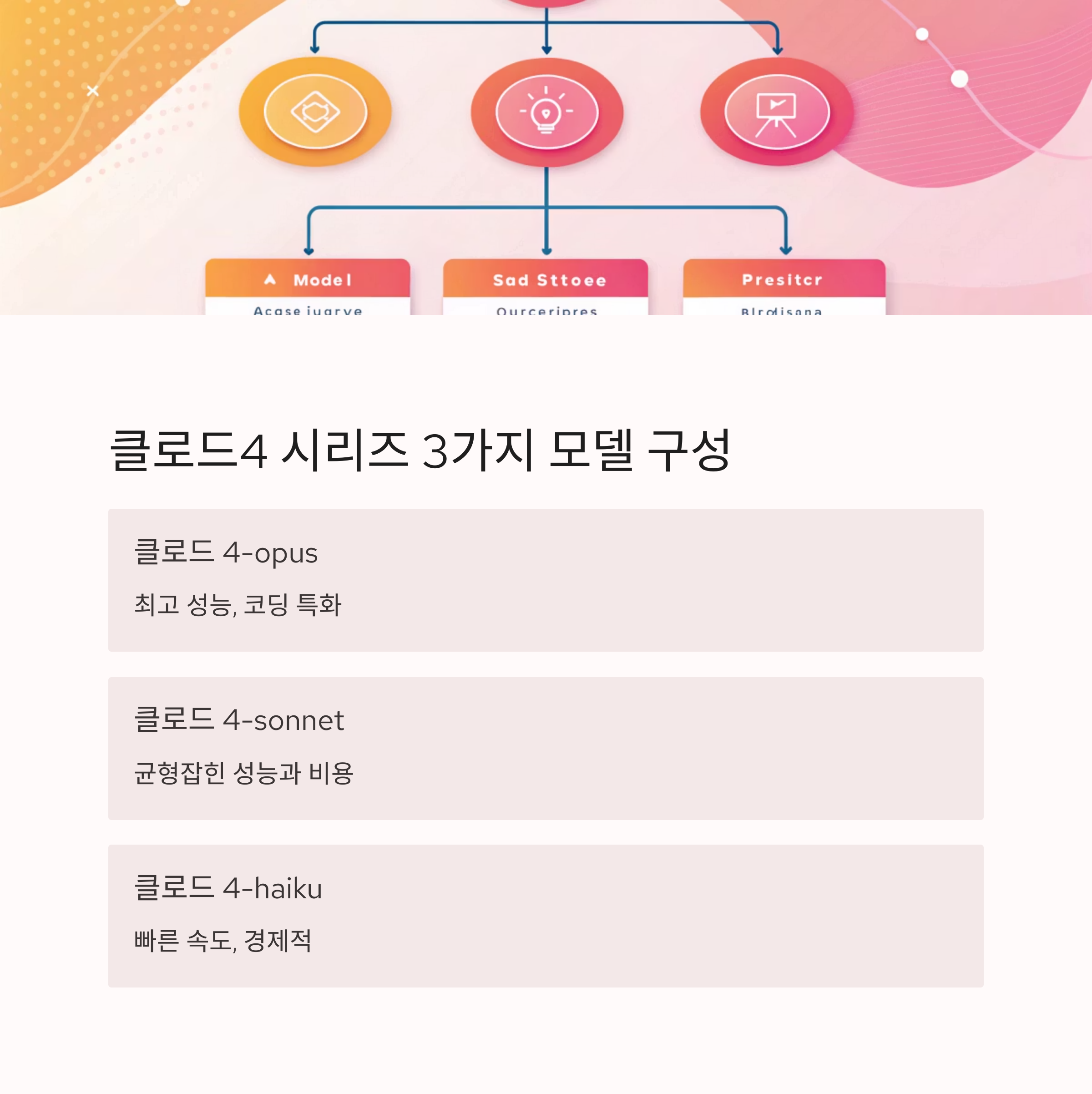 클로드 4-opus, 4-sonnet, 4-haiku 등 성능과 비용에 따라 선택 가능한 구조입니다