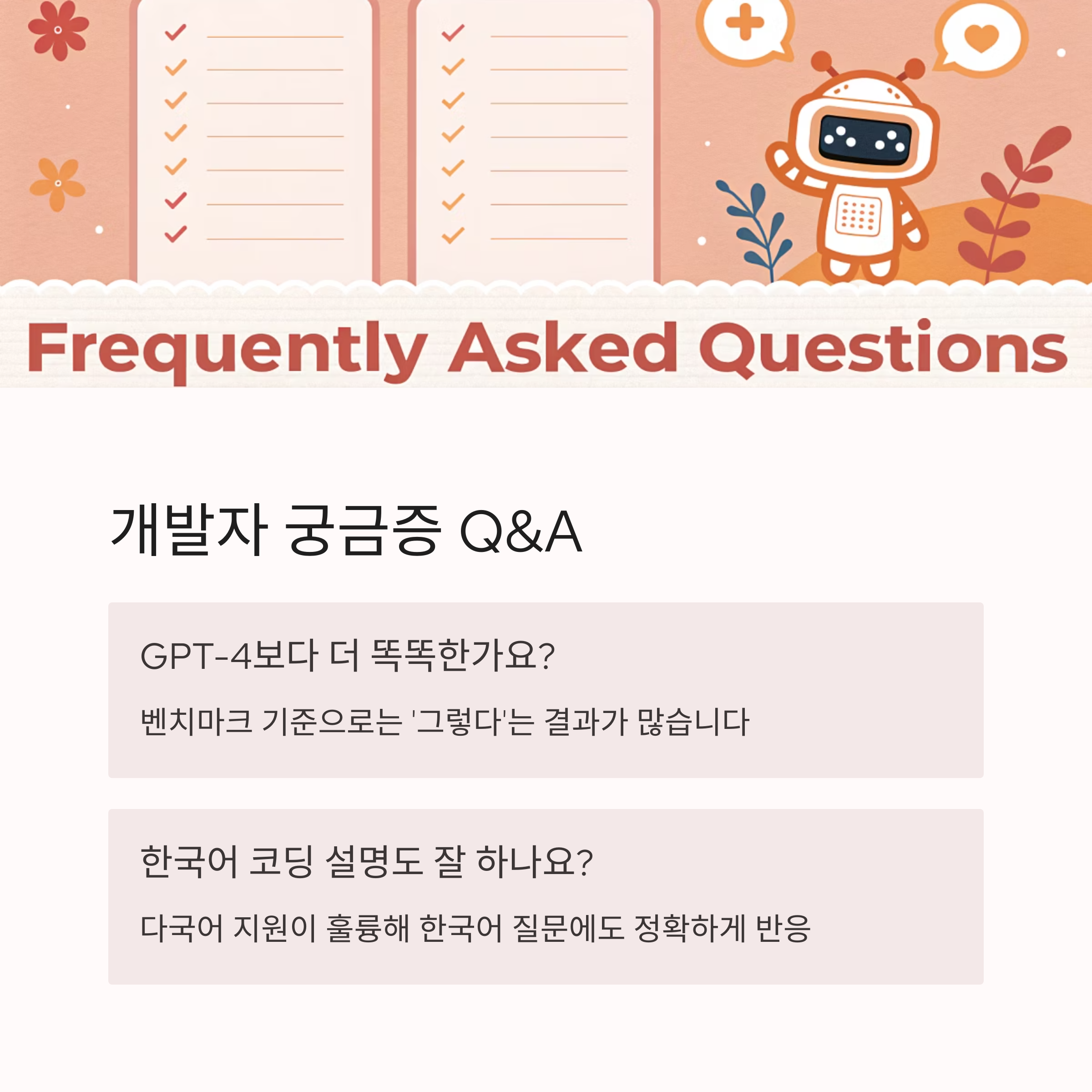 복잡한 JSON 파싱, API 설계, 수학적 알고리즘 구현 등에서 한층 자연스러운 대화형 지원이 가능해졌다는 반응입니다