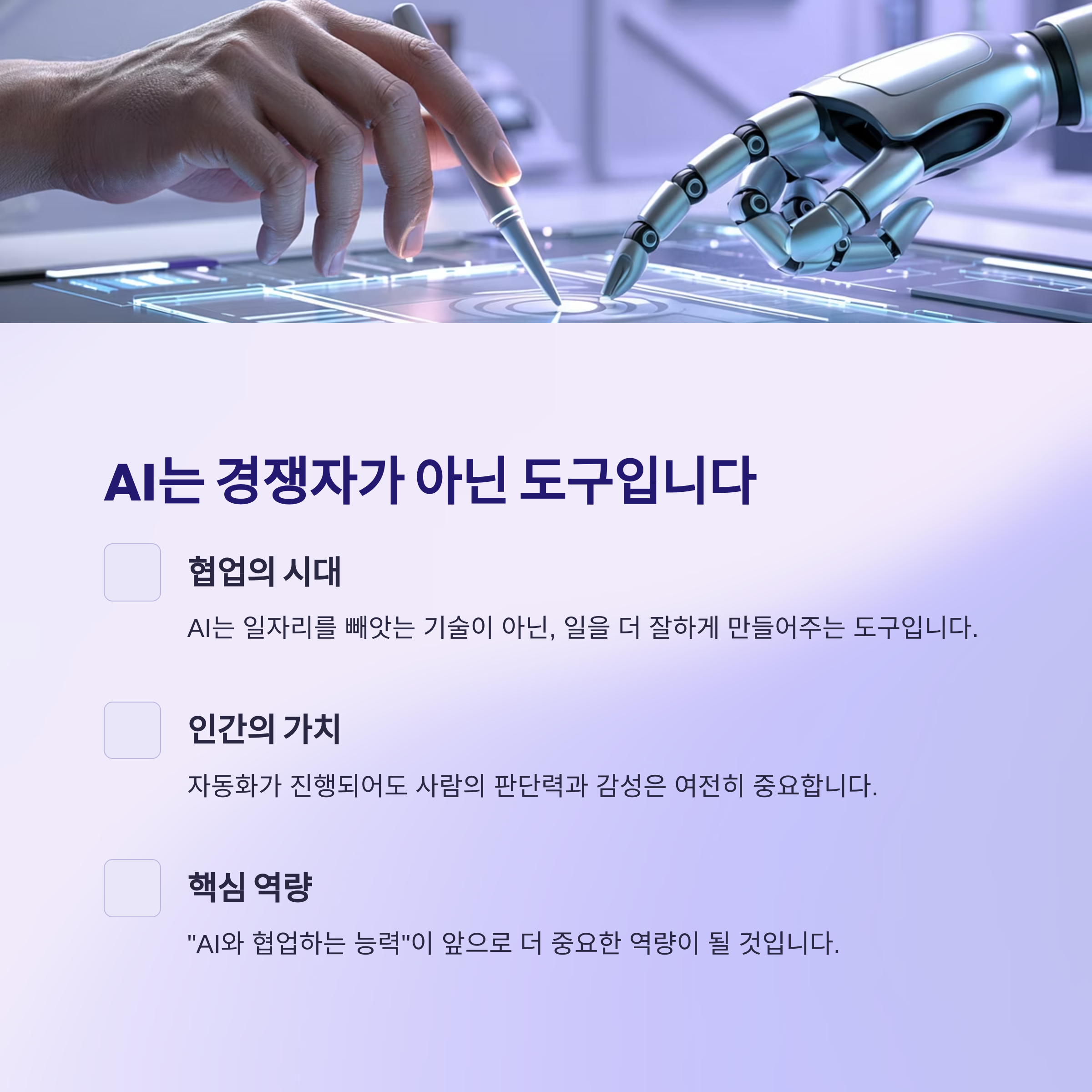 AI가 일부 자동화하더라도, 사람의 판단력과 감성은 여전히 중요합니다.