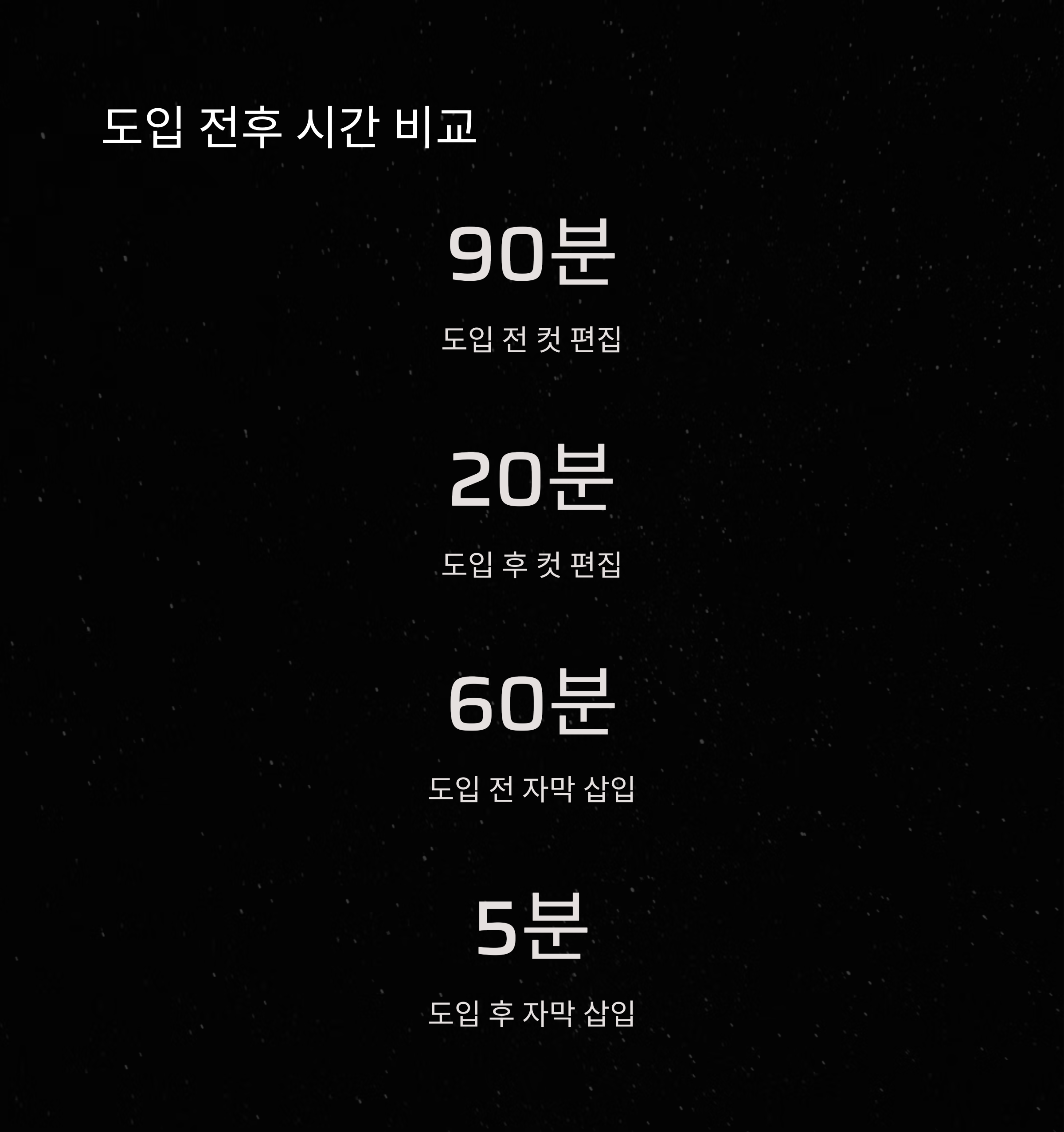 AI 영상 편집 툴을 도입한 뒤, 반복 작업은 80% 이상 줄었고 편집자는 콘셉트 기획과 썸네일 디자인에 집중할 수 있게 되었습니다.