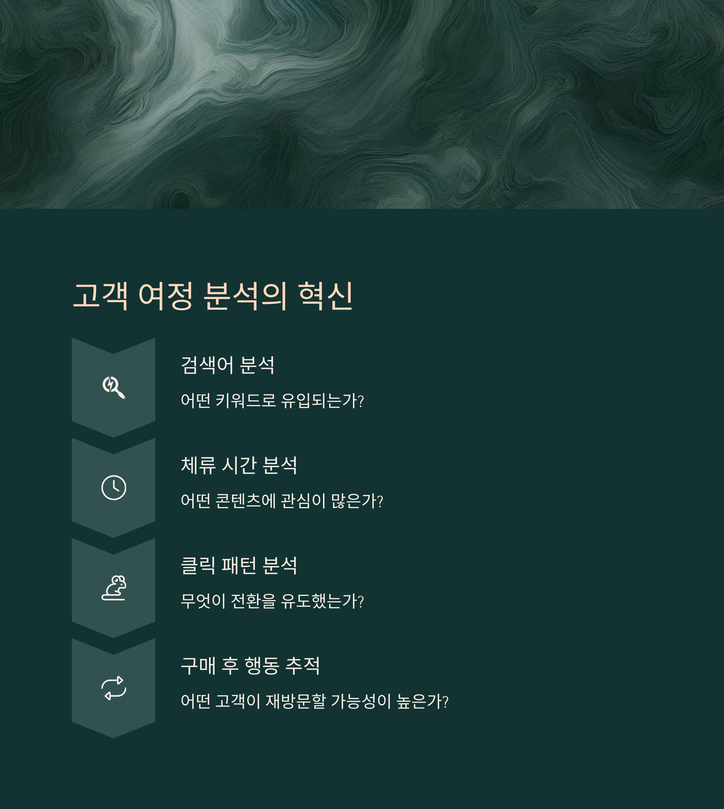 고객의 행동 패턴, 선호도, 이탈 지점을 분석해 줍니다.