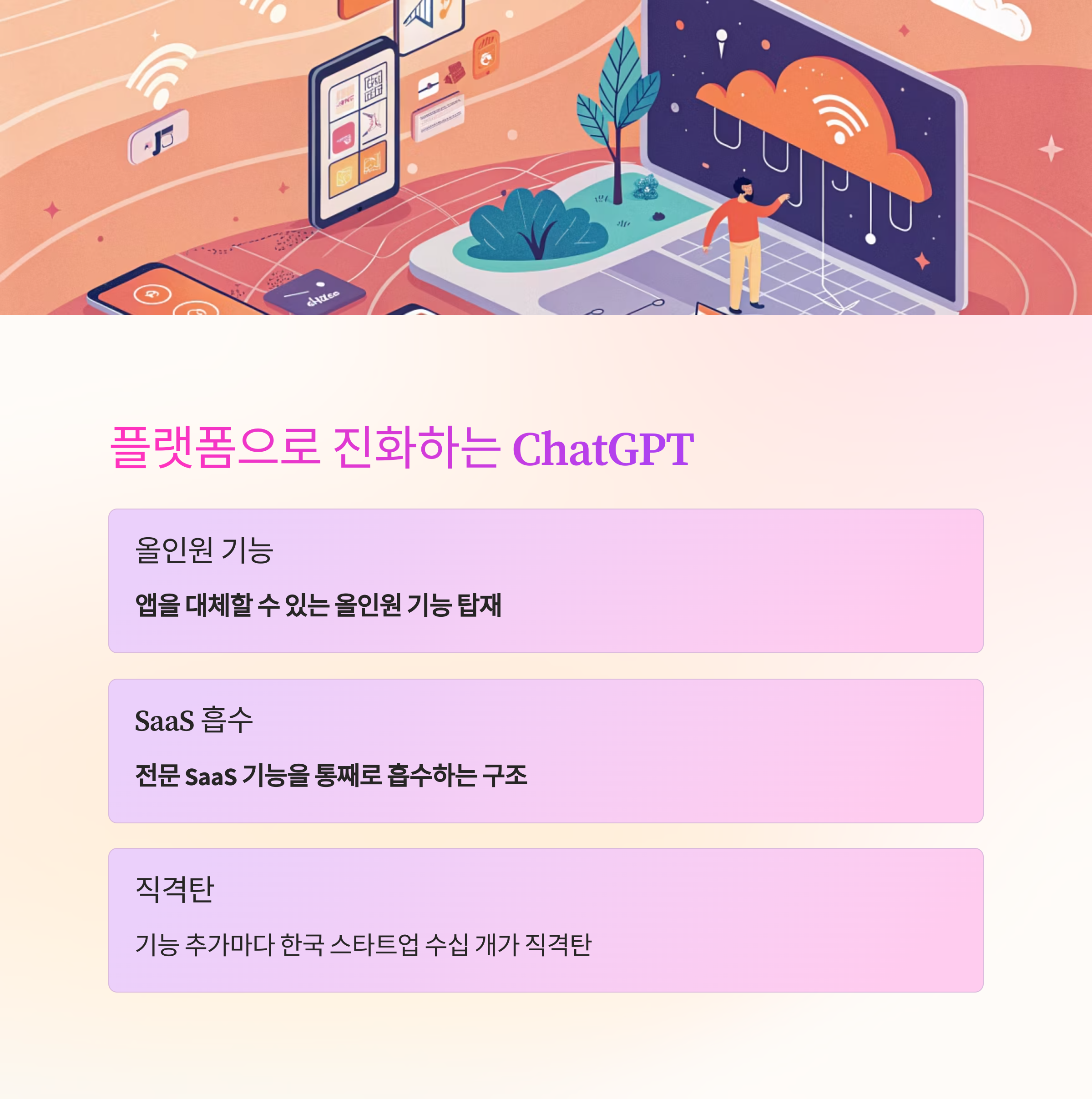 기능 하나가 추가될 때마다, 비슷한 기능을 제공하던 한국 스타트업 수십 개가 직격탄을 맞는다는 표현도 과장이 아닙니다.